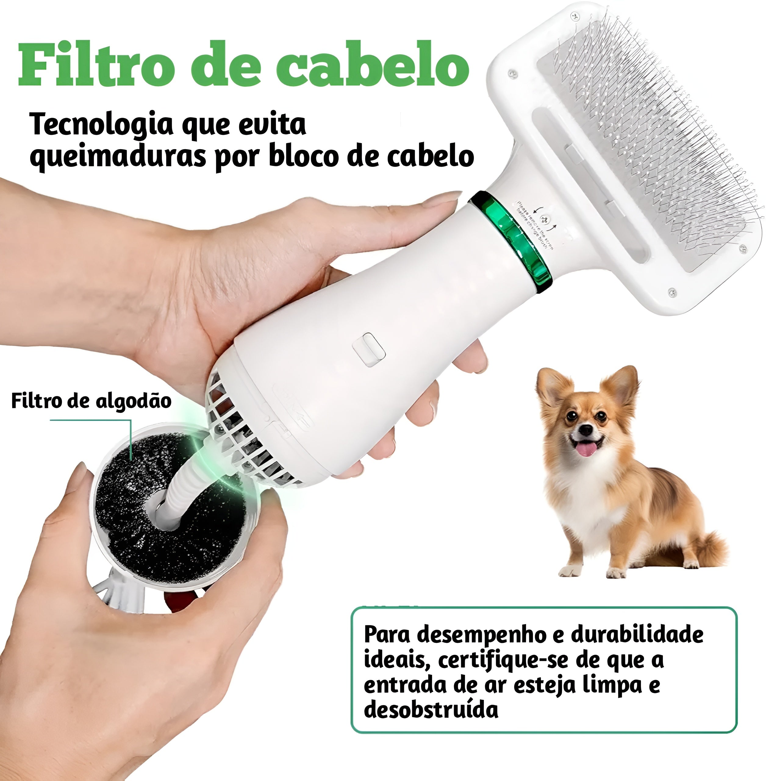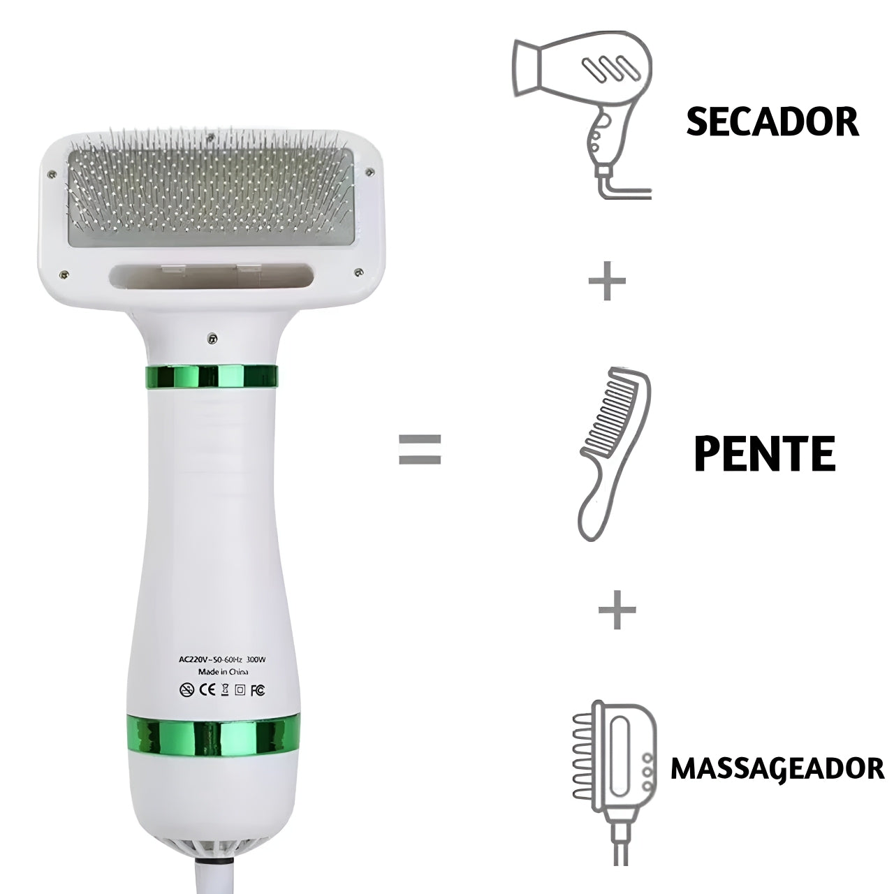 SECADOR PET 3 EM 1 - SECA, PENTEIA E MASSAGEIA OS PELOS DO SEU PET + BRINDE
